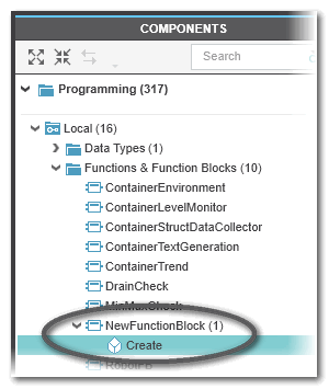 Öffnen Sie in den KOMPONENTEN den Ordner 'Programmierung | Lokal | Funktionen & Funktionsbausteine' und suchen Sie den anwenderdefinierten FB mit dem ungültigen Methodennamen. Benennen Sie die Methode um.