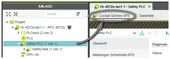So öffnen Sie das Cockpit der sicherheitsbezogenen SPS