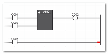 In FBS/KOP-Netzwerken fließt der Strom von der linken Stromschiene (die stets 'TRUE' ist) zur rechten Stromschiene. Kontakte im Netzwerk werden gelesen, Spulen werden geschrieben. Aus diesem Grund muss das letzte Objekt im Netzwerk, welches mit der rechten Stromschiene verbunden ist, mindestens eine Spule sein (mehrere sind möglich). Jedes andere Objekt als eine Spule ist unzulässig, da in einem solchen Fall das Ergebnis der logischen Operation in keine Variable geschrieben würde.