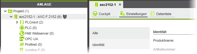 - Doppelklicken Sie in der ANLAGE auf den Geräteknoten, um dessen Eigenschaften zu öffnen.