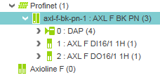 Profinet I/O-Module, die an diesem Gerät angeschlossen sind, werden ebenfalls unter dem Geräteknoten eingefügt.