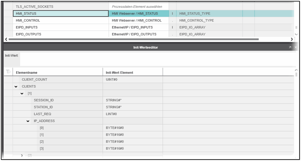 Der zu trennende Client wird im selben Array-Feld angezeigt wie der Client in der Struktur HMI_STATUS_TYPE (siehe oben stehendes Beispiel).