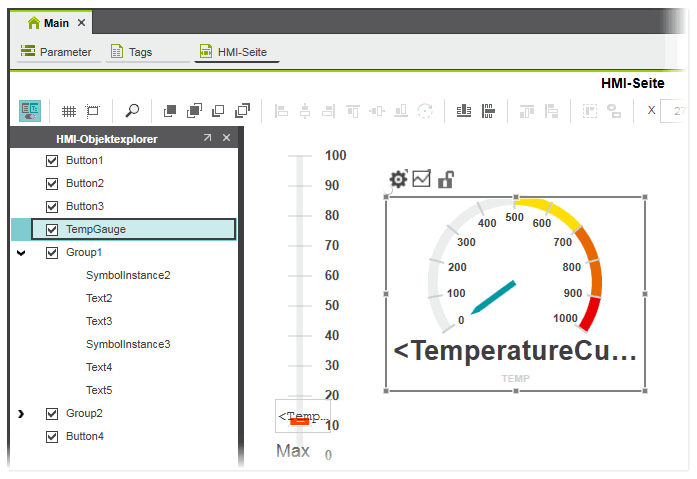 Der HMI-Objektexplorer ist ein leistungsstarkes Werkzeug zur Verwaltung der Objekte auf einer HMI-Seite bzw. HMI-Symbolseite. Mit dem Explorer können Sie schnell auf alle Objekte auf der HMI-Seite/Symbolseite zugreifen.