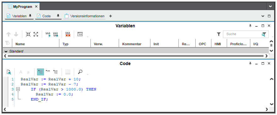 In der Anleitung arbeiten wir mit folgendem Programmcode geschrieben in ST.