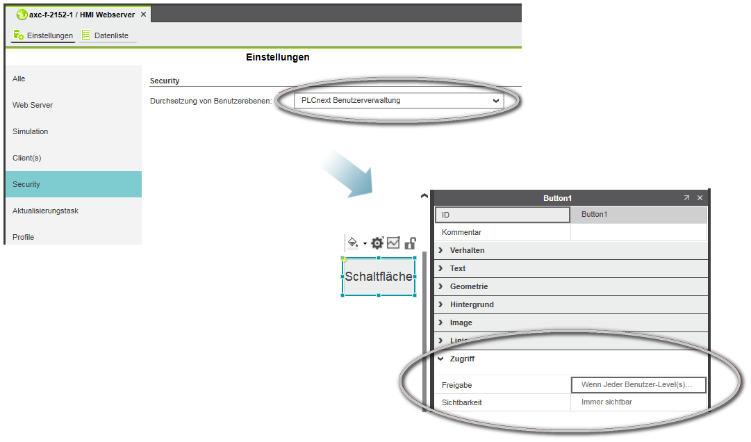 Informationen zu den Zugriffsrechten finden Sie im Thema Zugriffsrechte auf HMI-Seiten/HMI-Objekte durchsetzen. |