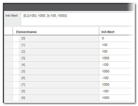 Im 'Init-Werteeditor' könnte eine Initialisierungsanweisung wie folgt lauten: