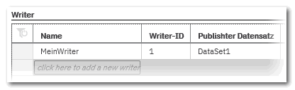 Es wird eine neue Writer-Gruppe mit einem Standardnamen in die Tabelle eingefügt.Klicken Sie an eine beliebige Stelle in der Tabelle, um den Standardnamen zu übernehmen oder ändern Sie ihn und drücken dann <Eingabe>.Die Gruppe wird auch in den Konfigurationsbaum eingefügt.