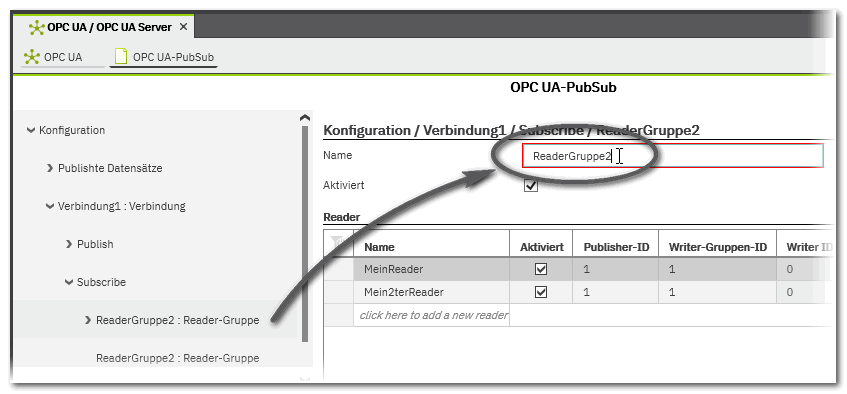 OPC UA PubSub-Konfigurationsfehler (PLCN0032): '...': Der Name der Reader-Gruppe muss innerhalb der Konfiguration eindeutig sein.
