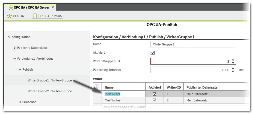 OPC UA PubSub-Konfigurationsfehler (PLCN0037): '...': Der Name des Writers muss innerhalb der Verbindung eindeutig sein.