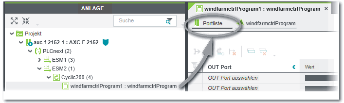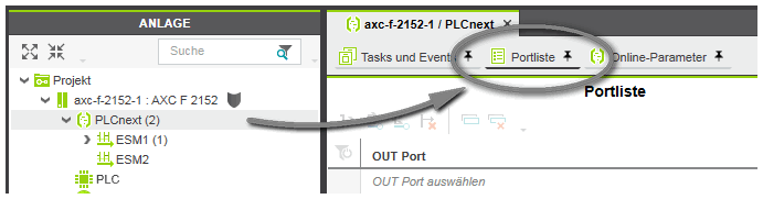 Doppelklicken Sie in der ANLAGE auf den entsprechenden Knoten und öffnen Sie die GDS-Portliste im Editorenbereich.