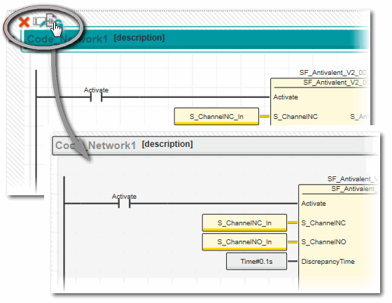 Ein verifiziertes Netzwerk wird mit einer Prüfsumme versiegelt. Der Code ist damit schreibgeschützt und bleibt solange gesperrt, bis die Verifizierungsmarkierung rückgesetzt wird. Ein schreibgeschütztes Netzwerk wird mit grauem Hintergrund angezeigt. Die Variablentabelle bleibt jedoch editierbar (siehe Hinweis unten).