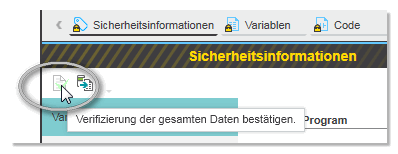 Nachdem Sie die Reihenfolge der Arbeitsblätter in der betroffenen POE geprüft haben, können Sie die Verifizierung und die korrekte Reihenfolge bestätigen, indem Sie auf folgende Schaltfläche im 'Sicherheitsinformationen'-Editor klicken: