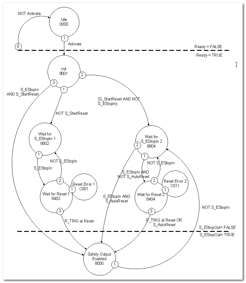 The states and hexadecimal codes shown in the diagram are explained in the topic "Diagnostic codes".