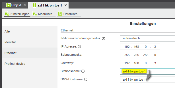 - Korrigieren Sie den 'Stationsname', indem Sie die im Projekt verwendete TLD hinter den bestehenden Namen anhängen (durch Punkt getrennt). Durch Bestätigen des geänderten Namens wird der DNS-Hostname geändert.