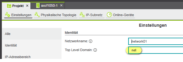 Ethernet-Fehler (TCPP0005): Der DNS-Hostname '...' des Geräts '...' verwendet nicht die Domäne der obersten Ebene '...' des Subnetzes.