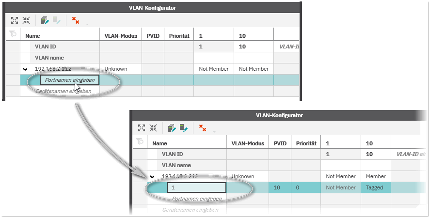 Geräteports direkt im 'VLAN-Konfigurator' hinzufügen und konfigurieren