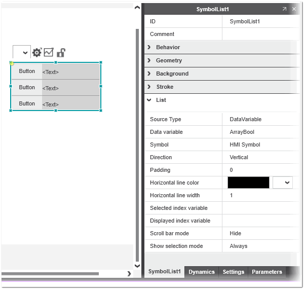| Symbol | Mandatory HMI symbol instance that is repeated for each element of the symbol list entry.If the property is not defined, a corresponding error is reported in the Error List (MESSAGES window). |
