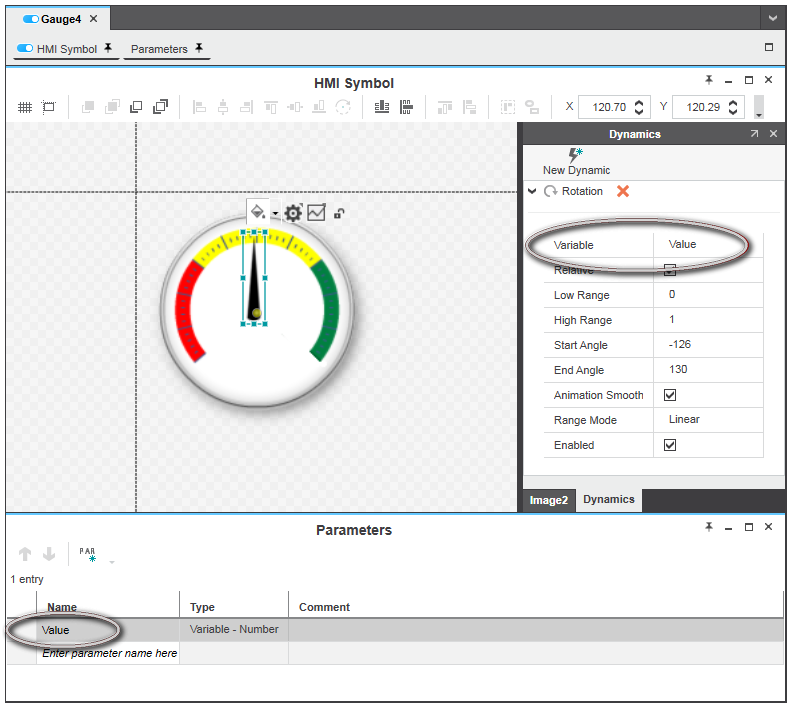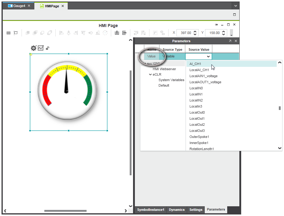 - Select the symbol instance in the HMI page.