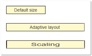 Adaptive layout of HMI symbols allows to resize instances of HMI  symbols while preserving the selected  original properties (text and line properties, etc.) of the symbol. This means, the content of the HMI symbol instance is not changed, but only its size and position when you resize it. For example, when you scale an HMI text symbol instance, i.e., enlarge or reduce the width or height of an HMI text symbol instance without adaptive layout, the whole symbol including the line widths and font size of the text changes (as shown in the bottom image in the following example). With activated adaptive layout, the HMI symbol instance behaves as configured in the symbol definition (top image in the example), i.e., the line widths and the font size are preserved and not affected by the resizing operation (middle image in the example).