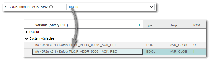 | Further Info For a detailed description of all available Profisafe system variables, refer to the respective controller user manual. For the RFC 4072S controller, read chapter 8 "System variables" of the user manual "Installation and operation in the RFC 4072S Remote Field Controller with integrated safety-related PROFINET controller (part. no. 108580_en_01). |