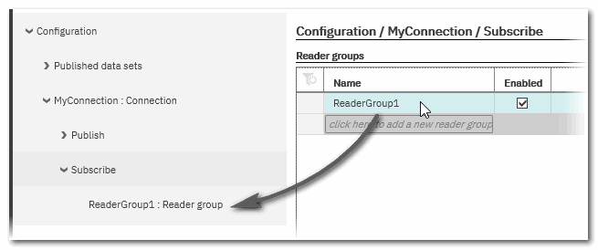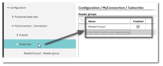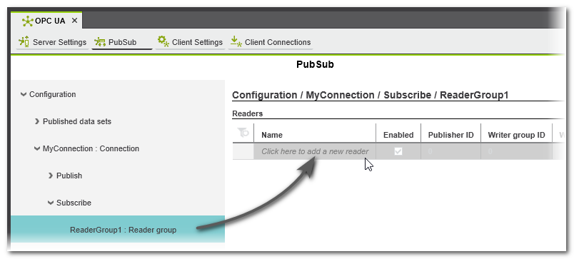 - In the tree on the left, open the 'Connection' under which you want to add readers and select the 'Subscribe' node.