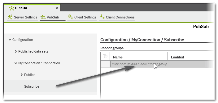 - Double-click the 'OPC UA' PLANT tree node and open the 'OPC UA PubSub' editor.