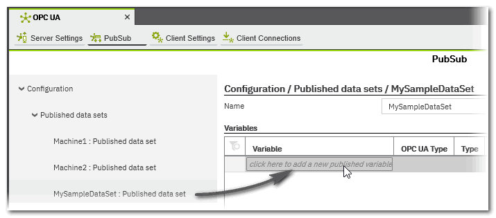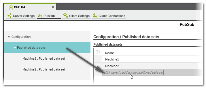 - Double-click the 'OPC UA' PLANT tree node and open the 'PubSub' editor.