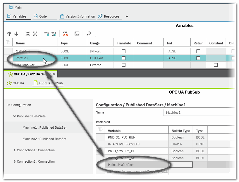- The 'Usage' of the port/variable has been changed. The PubSub communication supports OUT ports (but no IN ports) and resource-global variables (no locals or In/Out variables).
