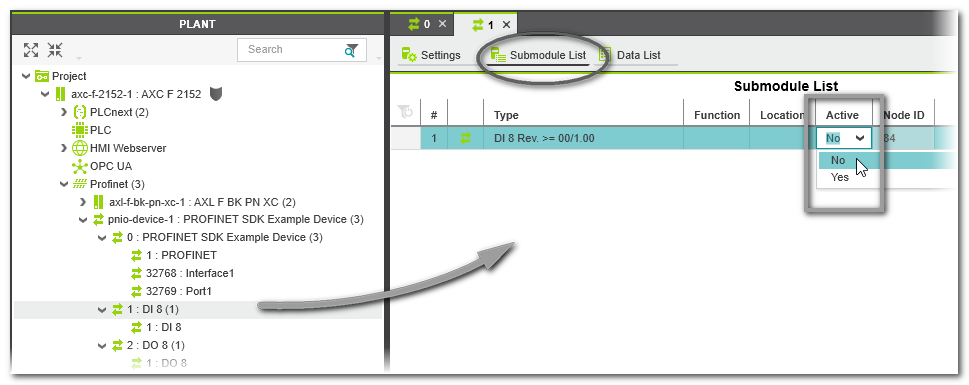 - Set the 'Active' attribute to 'No' if this subslot is addressed by another Profinet controller in the network.Set the 'Active' attribute to 'Yes' if you want to use this subslot in the current project.