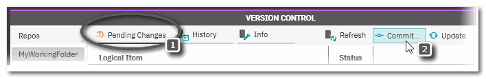 1. Open the 'Pending Changes' tab in the VERSION CONTROL window.