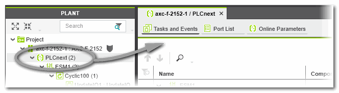 For that purpose, the 'PLCnext' PLANT node provides several editors for configuring the controller runtime: