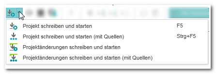 "One-Click"-Befehl 'Projektänderungen schreiben und starten (mit Quellen)'.