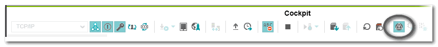 1. Doppelklicken Sie in der ANLAGE auf den Knoten der Steuerung und öffnen Sie den 'Cockpit'-Editor. Falls die Verwendung von Breakpoints im Cockpit noch nicht freigegeben ist, klicken Sie auf die nachfolgend gezeigte Schaltfläche und bestätigen die anschließende Sicherheitsabfrage mit 'Ja'. Wenn die Schaltfläche gedrückt ist, sind Breakpoints freigegeben und können beim Debuggen aktiv werden.