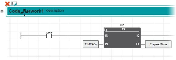 - Ist beim Einfügen eine leere Zelle innerhalb des Netzwerkrahmens ausgewählt, wird das Objekt links von der linken Stromschiene eingefügt und muss manuell verbunden werden, damit der Code gültig wird.