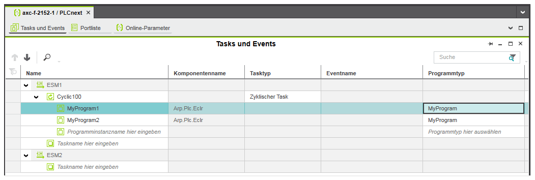 Eine 'Programm'-Variable kann in der 'IEC 61131-3'-Datenliste initialisiert werden. Der in der Spalte 'Init' definierte Anfangswert einer 'Programm'-Deklaration überschreibt den Anfangswert, der in der lokalen Variablentabelle definiert ist.
