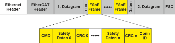 Das FSoE-Protokoll implementiert sogenannte Safety over EtherCAT-Frames, die auch als sicherheitsbezogene Datencontainer (Safety Container) bezeichnet werden können.