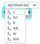 Mit Hilfe der Pfeiltasten, der Maus oder durch Eingeben weiterer Zeichen kann die Auswahlliste durchsucht werden. Um ein Element aus der Auswahlliste einzufügen, markieren Sie das Element und drücken die <Eingabe>-Taste. Mit der <Tab>-Taste wird der markierte Wert in das Eingabefeld übernommen ohne das Feld zu schließen (hilfreich, um Elemente von Code-Elementen einzufügen).