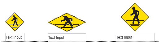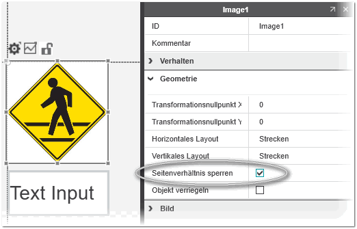 Das folgende Beispiel zeigt ein HMI-Symbol bestehend aus einem Texteingabefeld und einem Schild (kann als Symbol, Bild oder Gruppe implementiert werden). Das Kontrollkästchen 'Seitenverhältnis sperren' ist für das Schild aktiviert.
