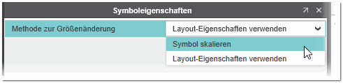 Um das Layout eines HMI-Symbols zu steuern, verfügt der HMI-Symbol-Editor im Register 'Symboleigenschaften' des Eigenschaftsfensters über die Option 'Methode zur Größenänderung'. Sie öffnen das Eigenschaftenfenster mit dem Register 'Symboleigenschaften', indem Sie auf den Hintergrund des Symbol-Editors klicken. Per Voreinstellung ist ein HMI-Symbol ein skalierendes Symbol.