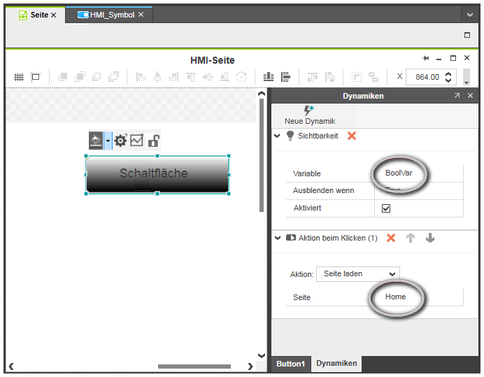 Beispiel für das Erzeugen eines HMI-Symbols aus Objekt(en)