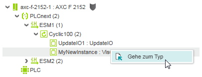 Nach dem erfolgreichen Erzeugen erscheint die Programminstanz mit der zugewiesenen Programm-POE unter dem zugehörigen Task-Knoten in der ANLAGE.