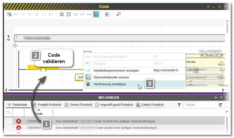 - Validieren Sie im jeweiligen Arbeitsblatt den importierten sicherheitsbezogenen Code.WARNUNG