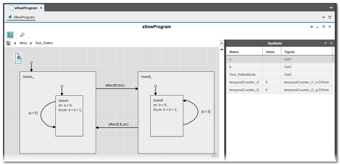 Beispiel: Stateflow Chart Viewer mit Symbol Viewer