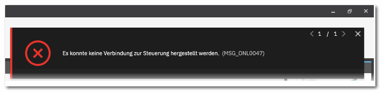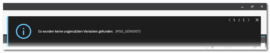 Diese Benachrichtigungen sind nicht-modal, d.h. während sie sichtbar sind kann PLCnext Engineer weiter bedient werden und sie verschwinden nach einigen Sekunden automatisch. Sie schließen Benachrichtigungen, indem Sie auf das x-Symbol klicken, oder Sie blättern mit '<' und '>' durch die Meldungen.Ist ein Sprungziel verfügbar, springen Sie durch Doppelklicken auf die Benachrichtigung zur Ursache der Meldung. - Benachrichtigungen in der Mitte des Bildschirms.
