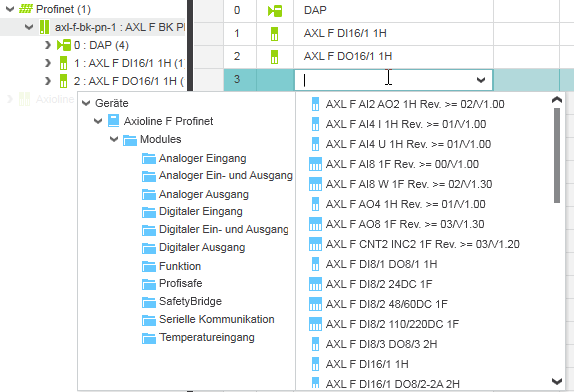 Es wird vorausgesetzt, dass die ANLAGE bereits eine Steuerung mit integriertem den Feldbus Controller enthält. Zum Einfügen von Profinet oder Ethercat I/O-Modulen muss zusätzlich ein geeigneter Buskoppler vorhanden sein.