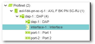 Profinet-Geräte haben eine logische Busschnittstelle, d.h. einen Zugriffspunkt (Access Point) für die Kommunikation. In PLCnext Engineer wird deshalb in der ANLAGE die Profinet-Schnittstelle durch einen eigenen Interface-Knoten repräsentiert. Beispiel: