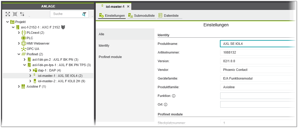 Dieses Hilfekapitel gilt nur für IO-Link Master von Phoenix Contact. IO-Link Master von anderen Herstellern werden nur durch allgemeine GSDML-Mechanismen unterstützt. |