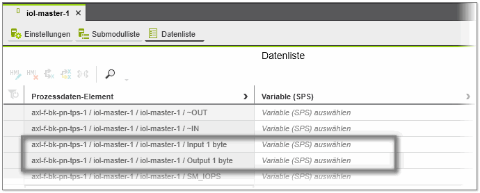 - Die individuellen Prozessdaten des Geräts erscheinen in der 'Datenliste' des Masters (und sind ebenfalls in der 'Datenliste' des IO-Link-Geräts sichtbar).
