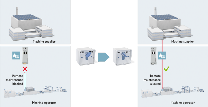 Basically, remote access should only be possible "on demand". For this purpose, the plant can be switched to a special maintenance mode, for example, by means of a key switch. In maintenance mode, the equipment may only operate with special attention to operational security and safety.