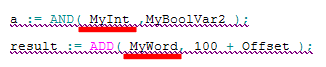 Fehlerbeispiel: Die Funktion AND erfordert ANY_BIT-Datentypen und nicht Integer-Datentypen (ANY_NUM). ADD erfordert ANY_NUM.